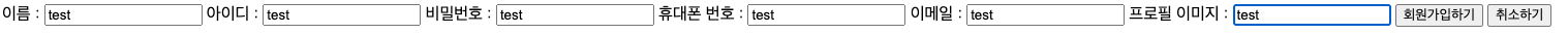 프로필 이미지 : <label for="profileImage"><input type="text" id="profileImage" name="profileImage"></label>