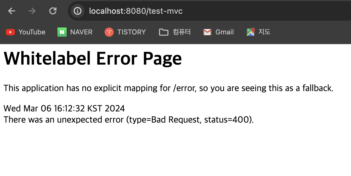 매핑을 통해 localhost8080/test-mvc로 이동해보자.